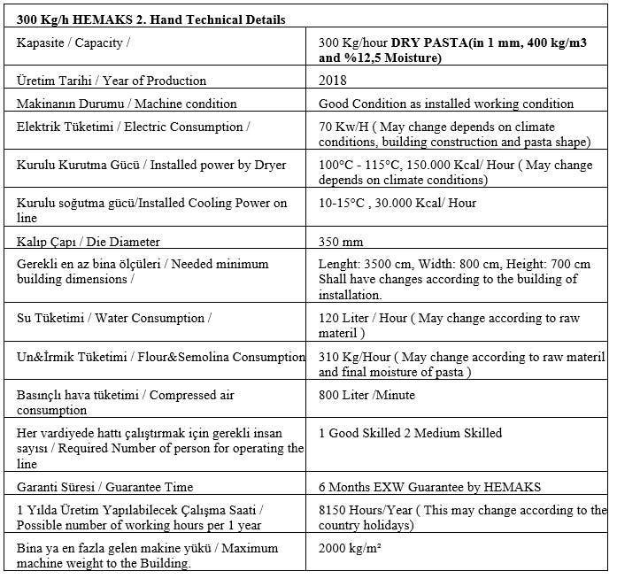 SECOND HAND, 300 KG/S SHORT - CUT PASTA PRODUCTION LINES